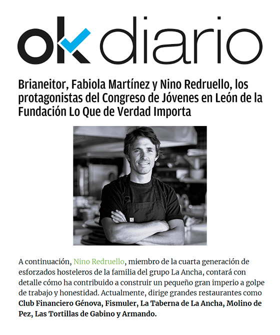 Un año más, Nino Redruello ha participado en el congreso de la fundación Lo Que De Verdad Importa para inspirar a jóvenes con su relato de vida, una vida de esfuerzo y trabajo, de conciliación y amor a un legado, de disfrute por los sueños cumplidos e ilusión por los que están por cumplir. Todo desde la puesta en valor de las cosas que realmente merecen la pena y los valores humanos.